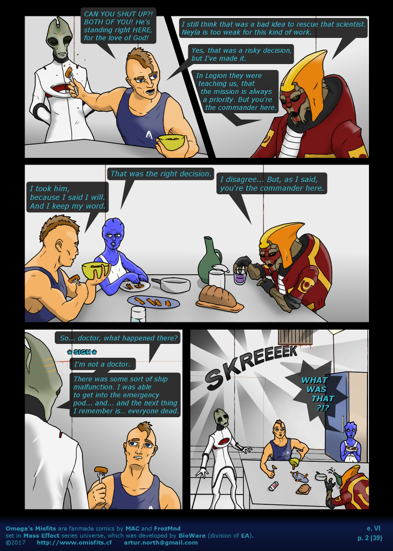 6. Knocking in the Space (p. 38) (3rd September 2017)5. Cargo (p. 31) (7th April 2016)4. Fully Functional (p. 22) (10th September 2015)3. Bird is the Word (p. 15) (30th July 2015)2. Omega Deals (p. 7) (16th July 2015)1. Pilot Episode (p. 1) (2nd July 2015)